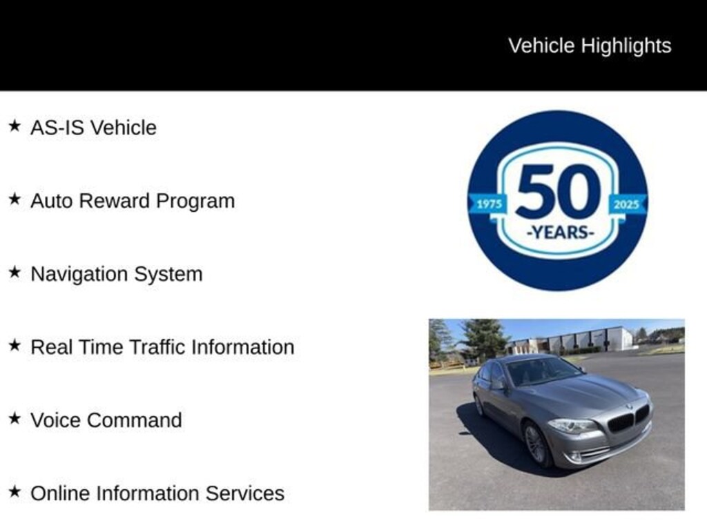 Discover the exceptional performance and refined luxury of this 2011 BMW 5 Series 535i xDrive. This all-wheel-drive sedan boasts a powerful 3.0L I6 DOHC 24V TwinPower Turbo engine, delivering an impressive 19 city/29 highway MPG. Elevate your driving experience with a host of premium features, including:
