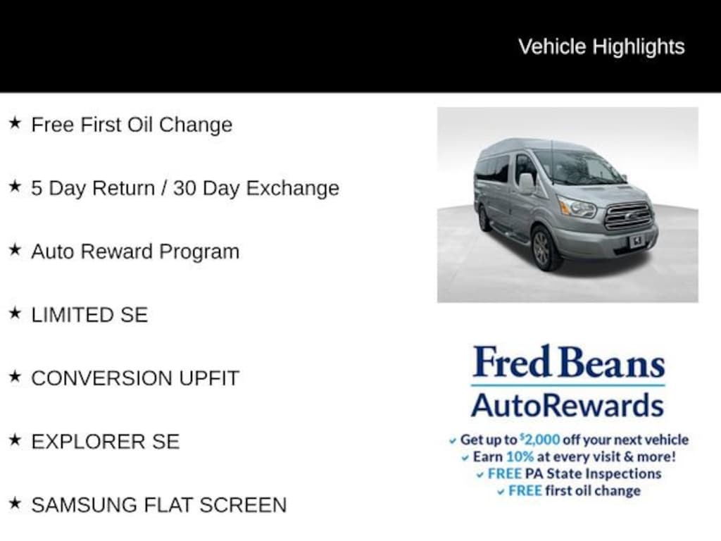 The Transit-150's powerful EcoBoost V6 engine delivers impressive performance, while the rear-view camera and trailer hitch assist provide enhanced maneuverability and peace of mind when navigating tight spaces or towing. The stylish 16-inch aluminum wheels and exterior upgrade package add a touch of sophistication to the van's rugged good looks.