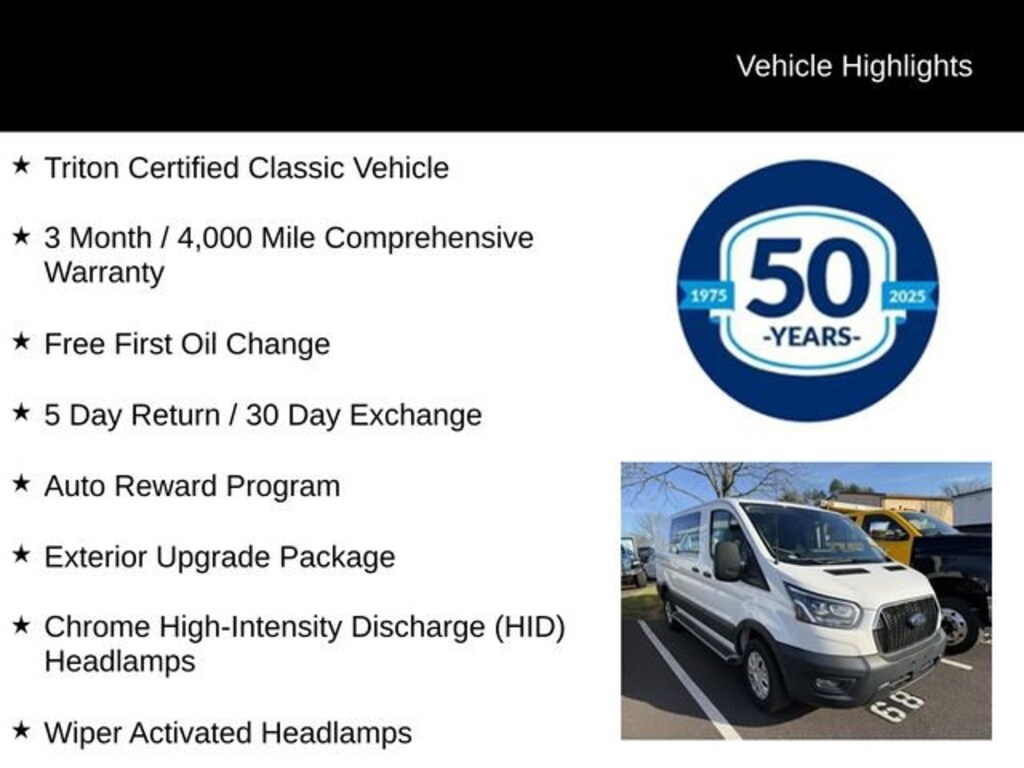 Recent Arrival! 2023 Ford Transit-250 Base 3.5L V6 Flex Fuel 10-Speed Automatic with Overdrive RWD 3D Cargo Van Oxford White Triton Certified Classic Vehicle, 3 Month / 4,000 Mile Comprehensive Warranty, Free First Oil Change, 5 Day Return / 30 Day Exchange, Auto Reward Program, Chrome High-Intensity Discharge (HID) Headlamps, Exterior Upgrade Package, Honeycomb Mesh Grille w/Chrome Surround, Wheels: 16 Steel w/Full Silver Cover, Wiper Activated Headlamps.