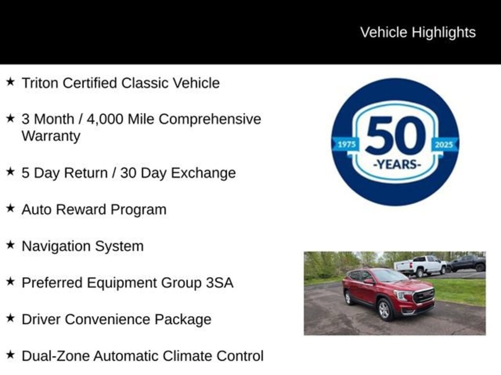 For added peace of mind, this Terrain SLE is Triton Certified, meaning it has undergone a rigorous multi-point inspection and comes with a comprehensive warranty. Our Triton Certified vehicles are held to the highest standards, ensuring you can drive with confidence.