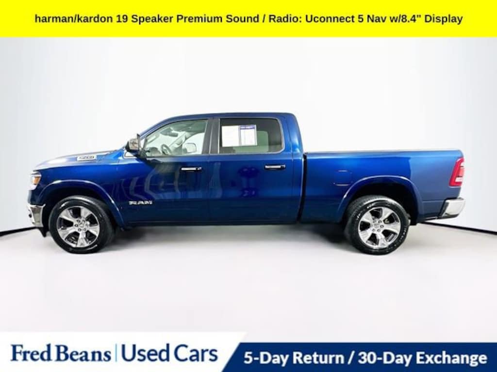 Recent Arrival! 2022 Ram 1500 Laramie HEMI 5.7L V8 Multi Displacement VVT 8-Speed Automatic 4WD 4D Crew Cab Patriot Blue Pearlcoat Triton Certified Classic Vehicle, 3 Month / 4,000 Mile Comprehensive Warranty, Free First Oil Change, 5 Day Return / 30 Day Exchange, Auto Reward Program, Apple CarPlay/Android Auto, Auto High Beam Headlamp Control, Foam Bottle Insert (Door Trim Panel), harman/kardon 19 Speaker Premium Sound, Heated Second Row Seats, Laramie Level B Equipment Group (DISC), ParkSense Front/Rear Park Assist w/Stop, Radio: Uconnect 5 Nav w/8.4 Display, Rain Sensitive Windshield Wipers, Rear 60/40 Folding Split Recline Seat, Rear Underseat Compartment Storage, Remote Tailgate Release.