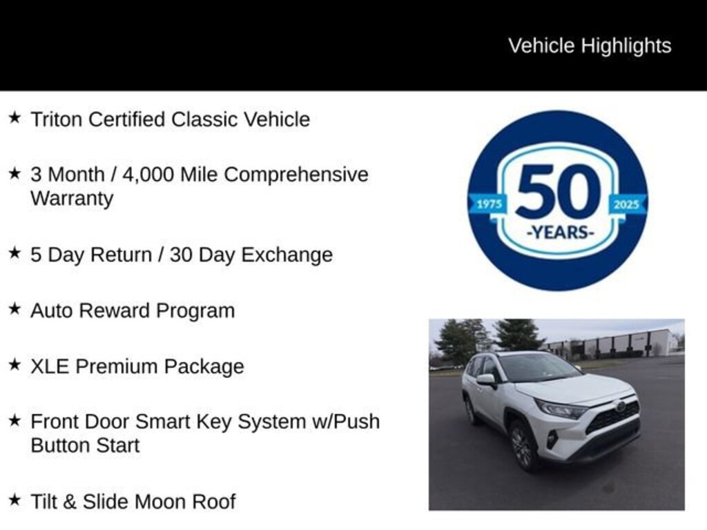 This Triton Certified Classic Vehicle has been meticulously inspected and comes with a comprehensive 3-month/4,000-mile warranty, giving you the peace of mind you deserve. With the added benefits of our 5-day return and 30-day exchange policy, as well as our Auto Reward Program, you can purchase with confidence, knowing that your satisfaction is our top priority.