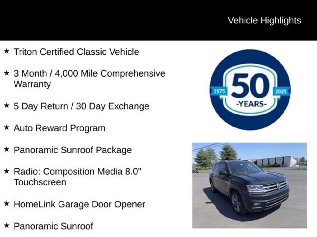 This Atlas is more than just a capable and well-equipped SUV it's a certified pre-owned vehicle, ensuring you can drive with confidence. The Triton Certified Classic Vehicle designation means this Atlas has undergone a rigorous multi-point inspection and comes with a comprehensive warranty, giving you peace of mind on the road.